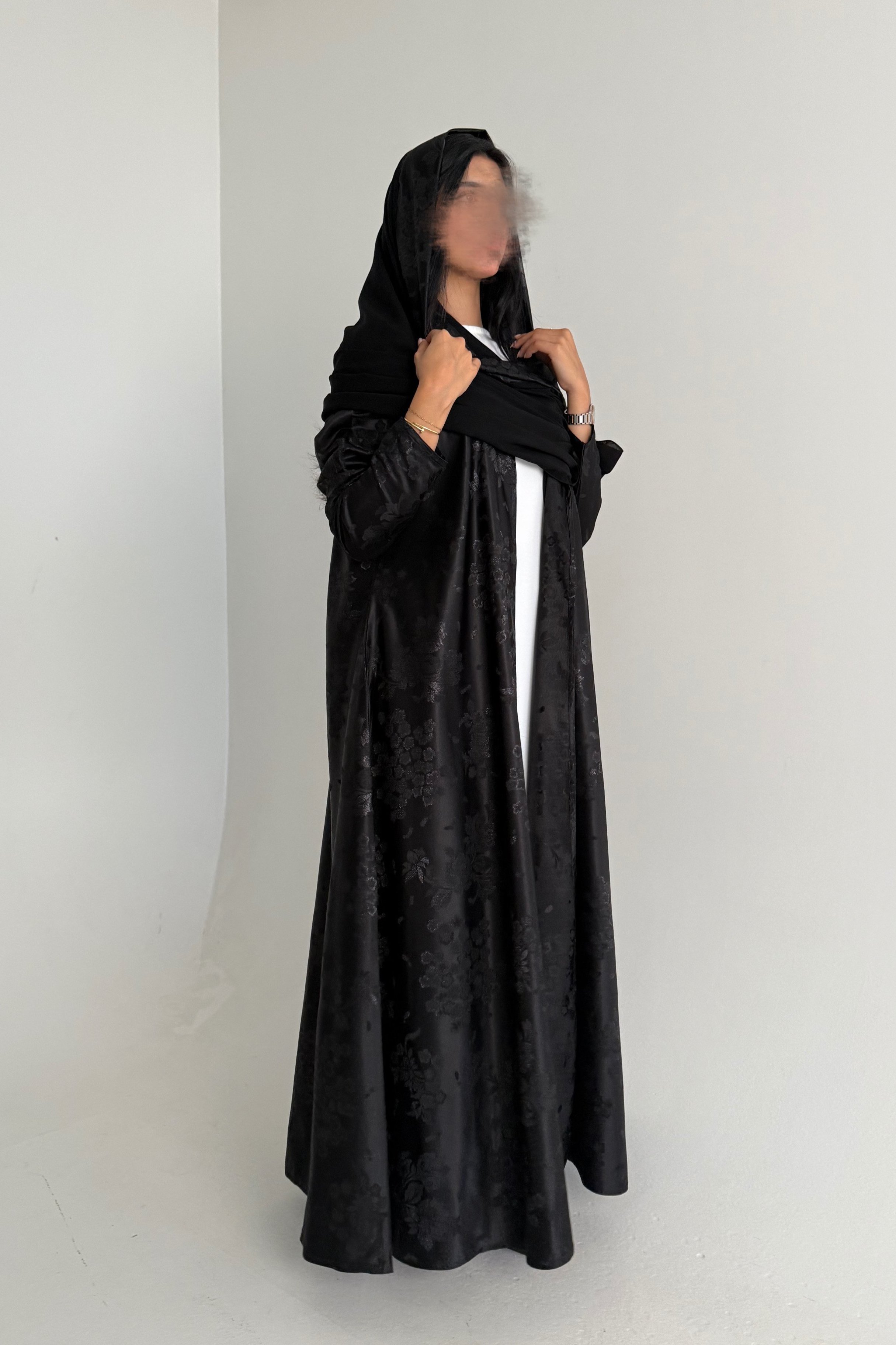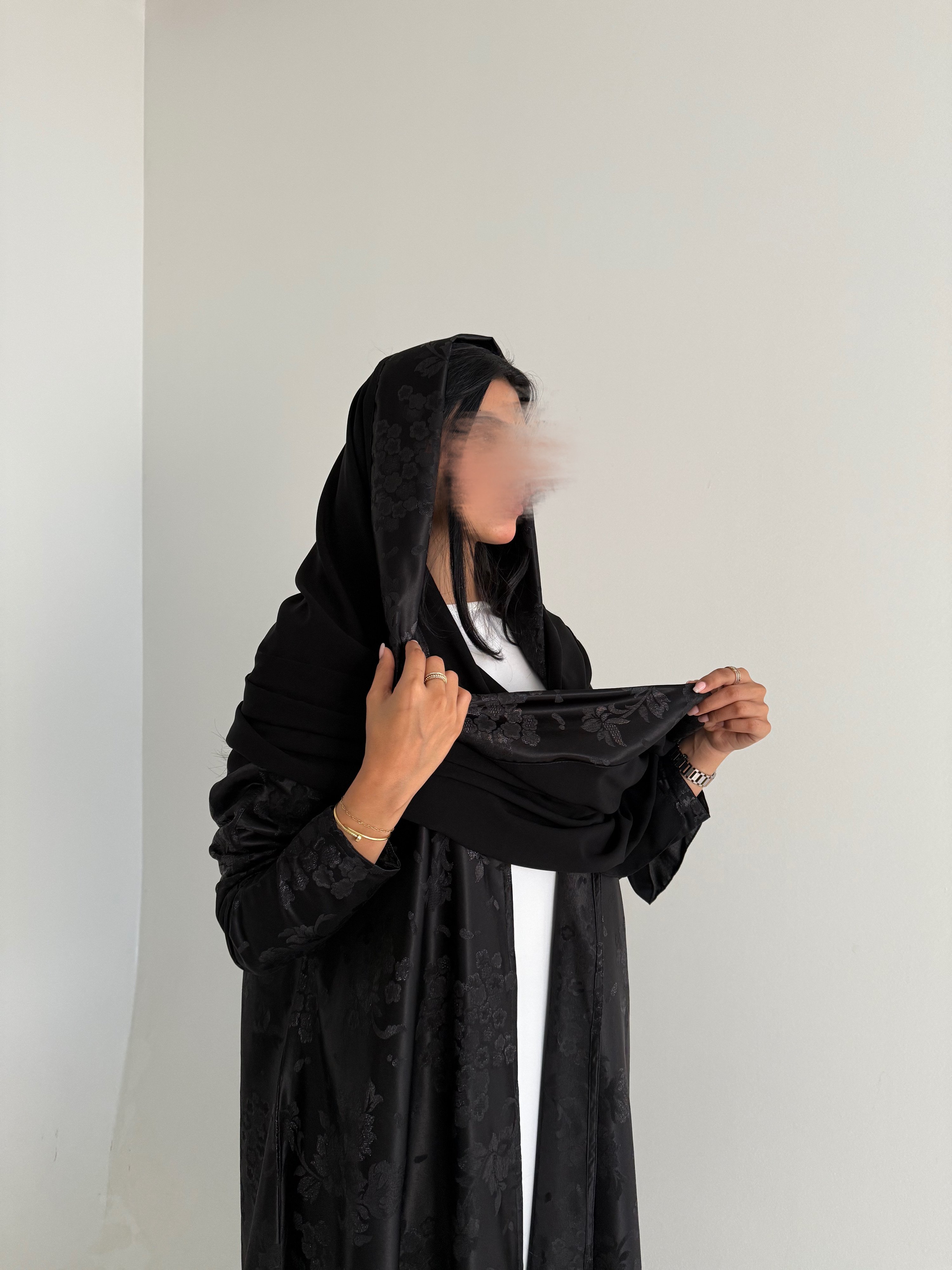 التفاصيل : قماش العباية تفتة جاكار ، قصة العباية كلوش و تتغير حسب الطلب ، طرحة أطراف جاكار