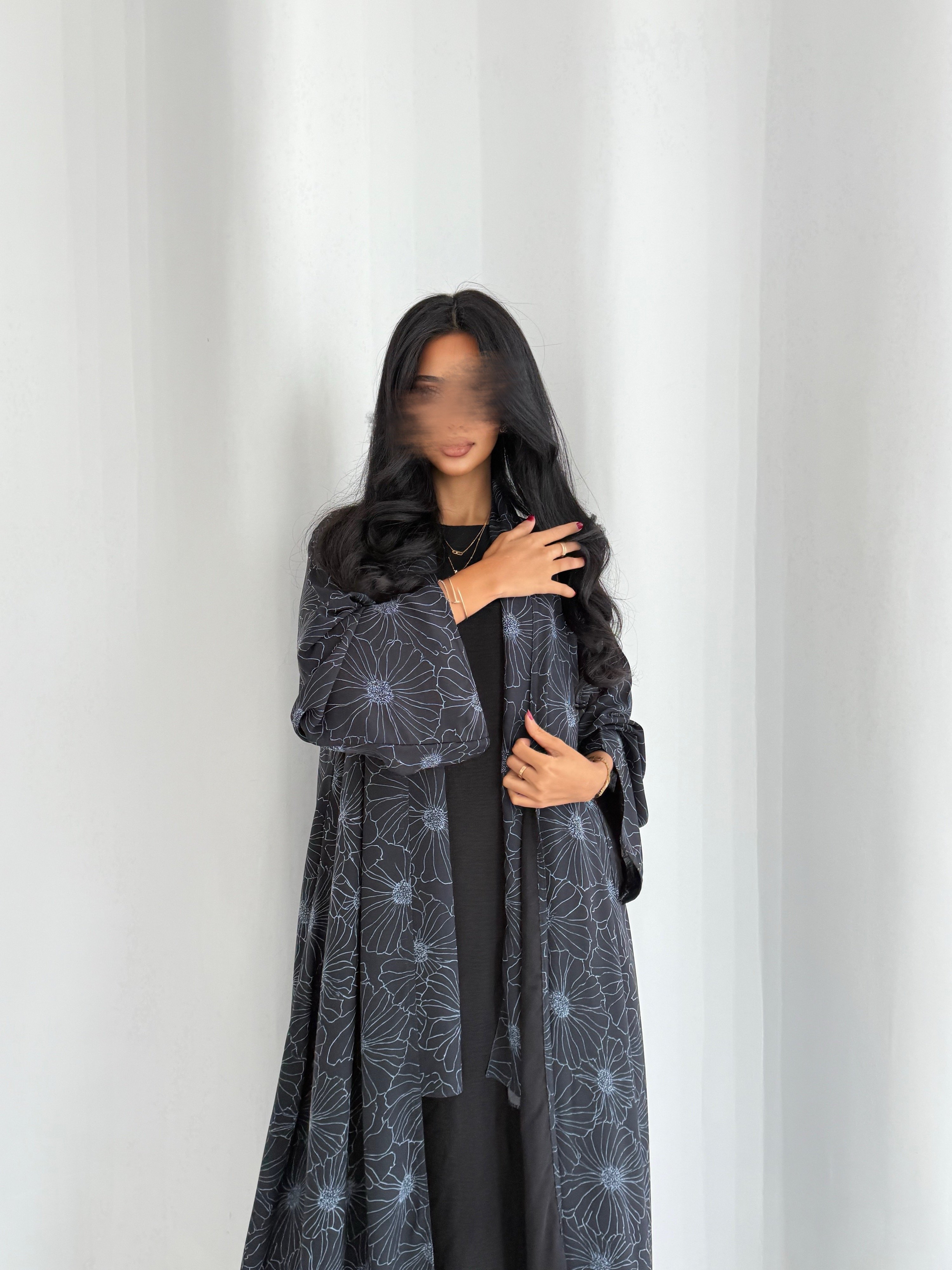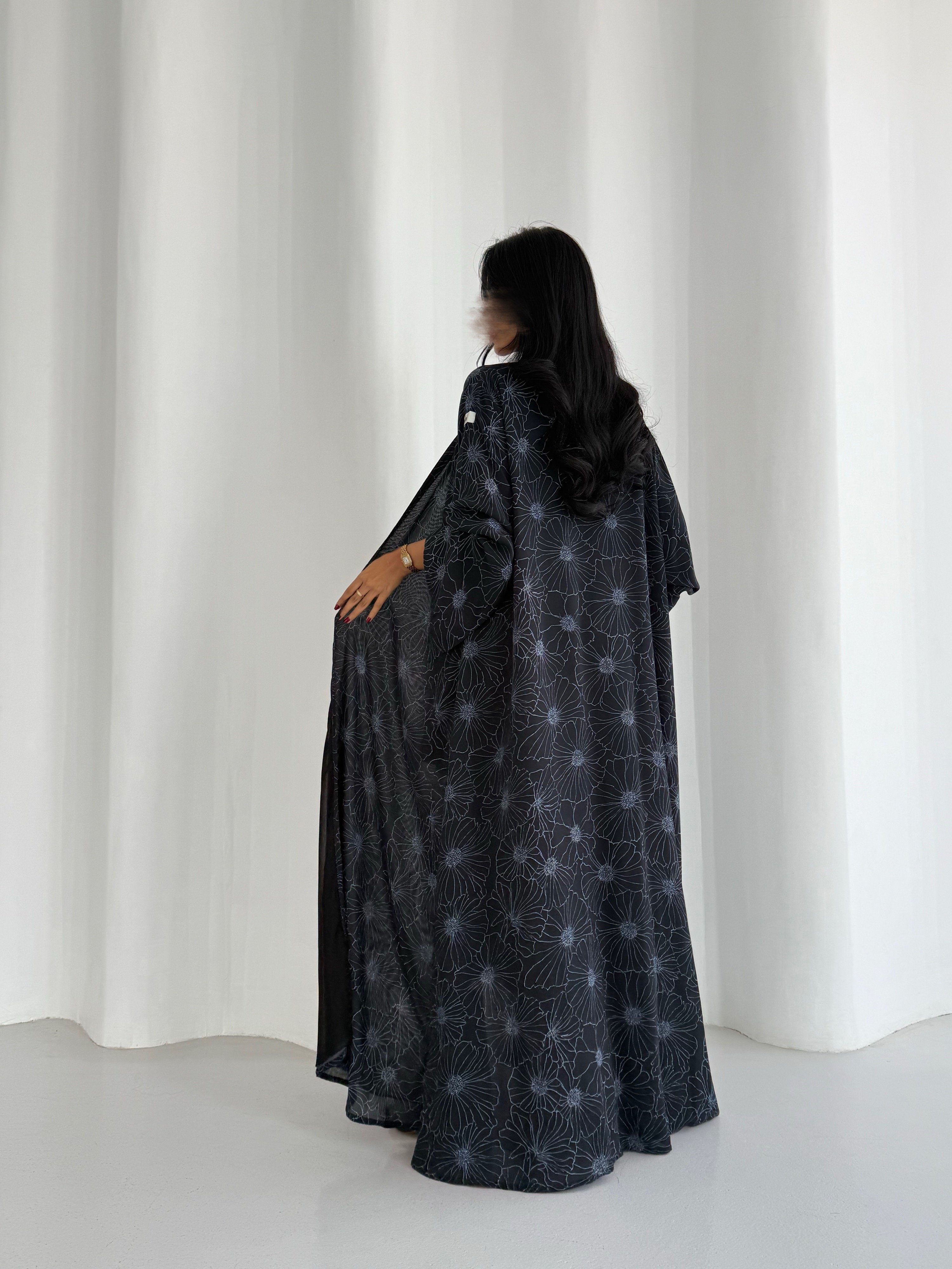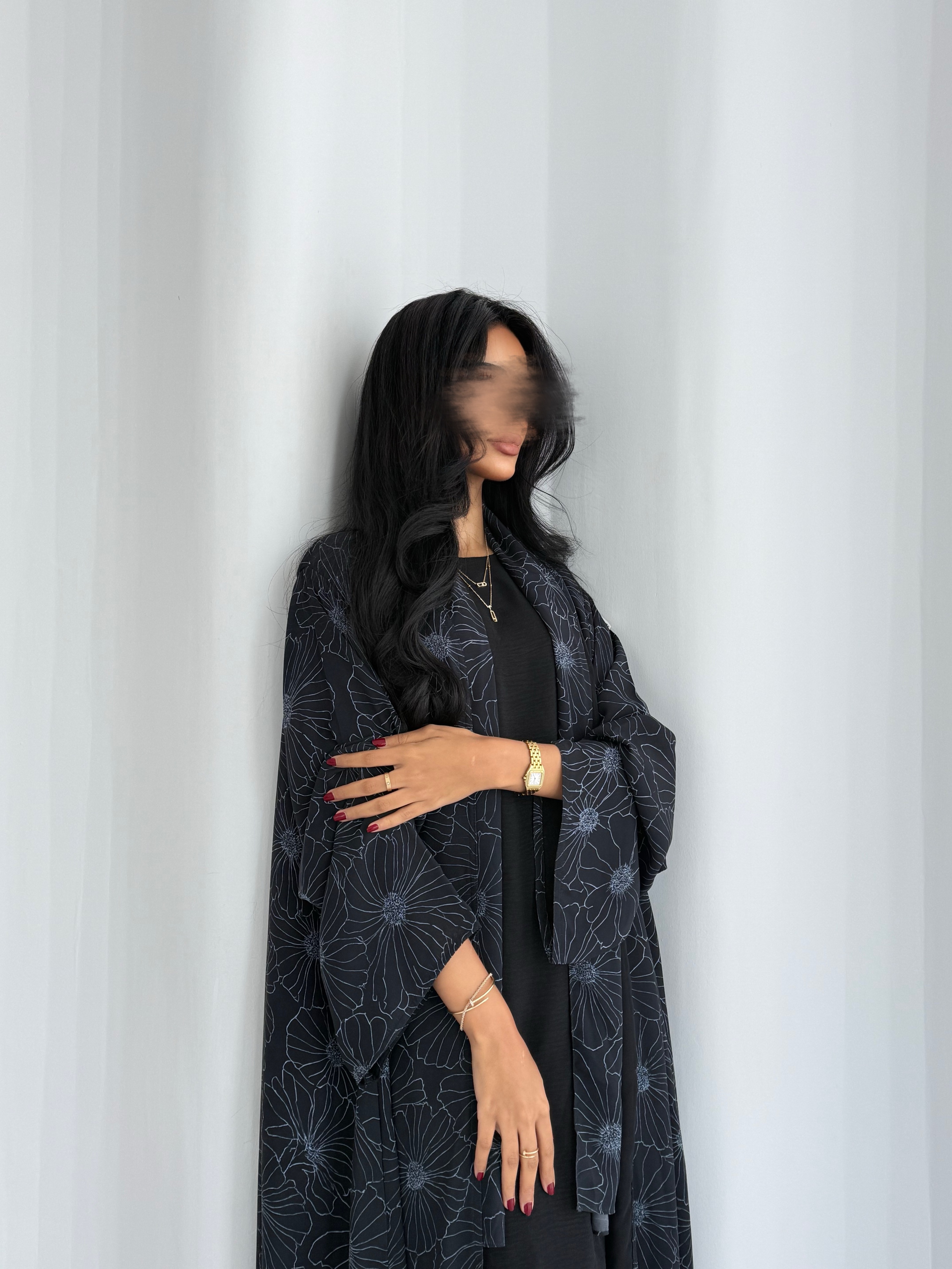 رقم المنتج بالموقع : A42السعر : 349القماش : شيفون مبطن طباعة خاصة بآماق لاين الطرحة : من نفس القماش قصة العباية : نص كلوش