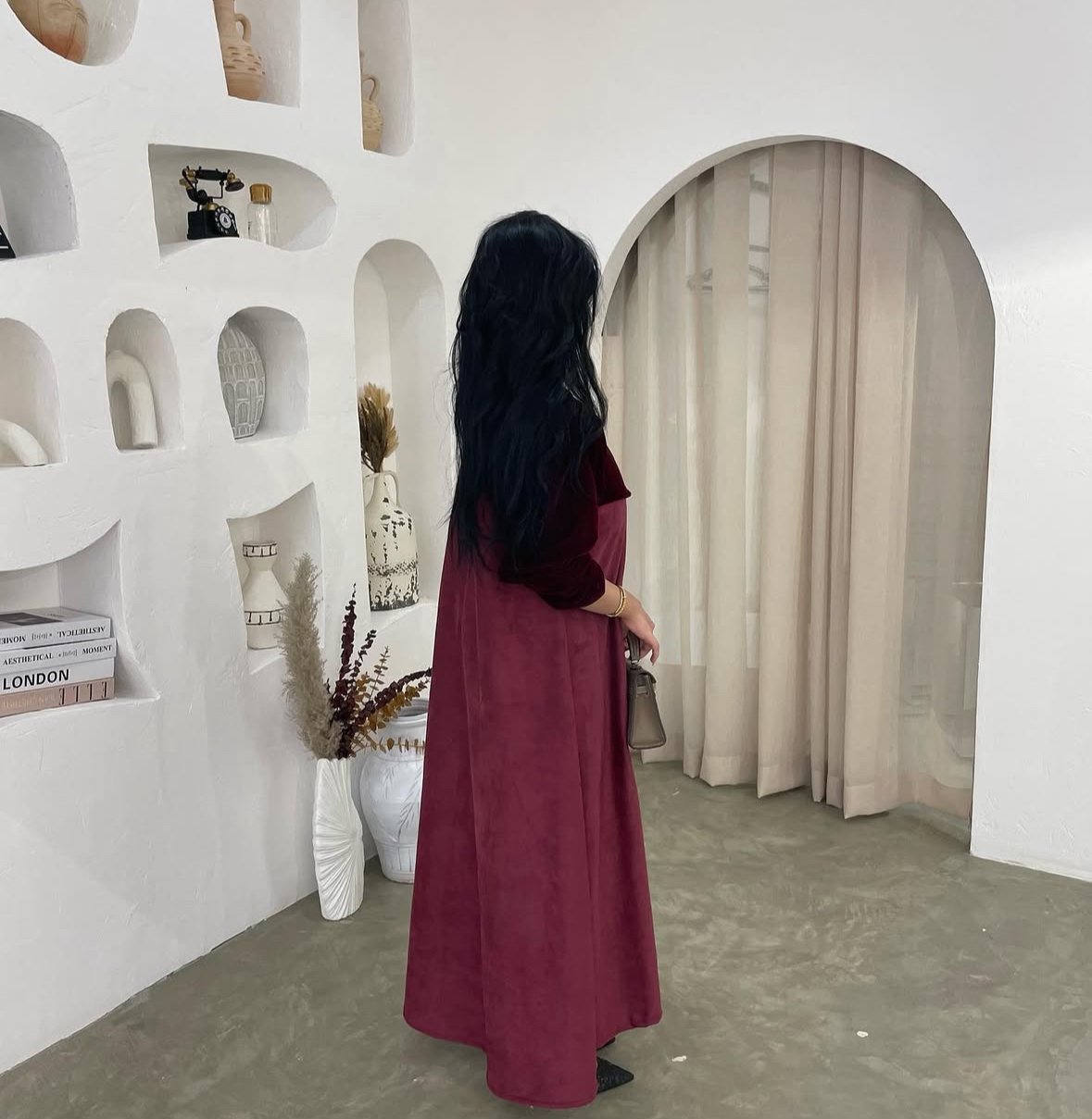 التفاصيل : القصه كلوش و تتغير حسب الطلب ، قماش العبايه شامواه و مخمل ، مع طرحه سادة نفس لون العبايه ، متوفر اللون الأسود .